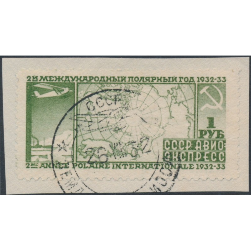 RUSSIA / U.S.S.R. / SOVIET UNION / РОССИЯ 1932 1R green Polar Flight, perf. 10½, used – no thins, tears or bends. Michel Cat. # 411B SG Cat. # 602a