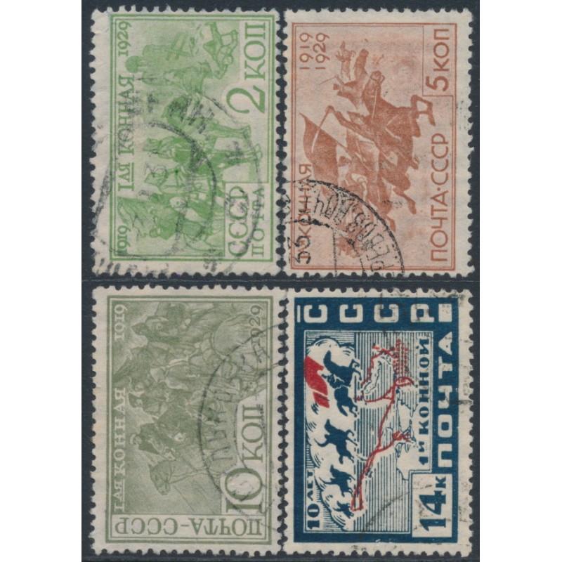 RUSSIA / U.S.S.R. / SOVIET UNION / РОССИЯ 1930 2K to 14K First Red Cavalry set of 4, used – no thins, tears or bends. Michel Cat. # 385-388 SG Cat. # 569-572
