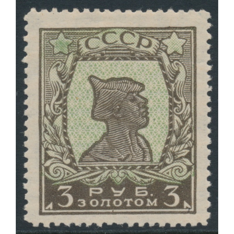 1926 3R green/brown Red Army Soldier, perf. 12½:12½, with watermark, mint hinged – no thins, tears or bends.