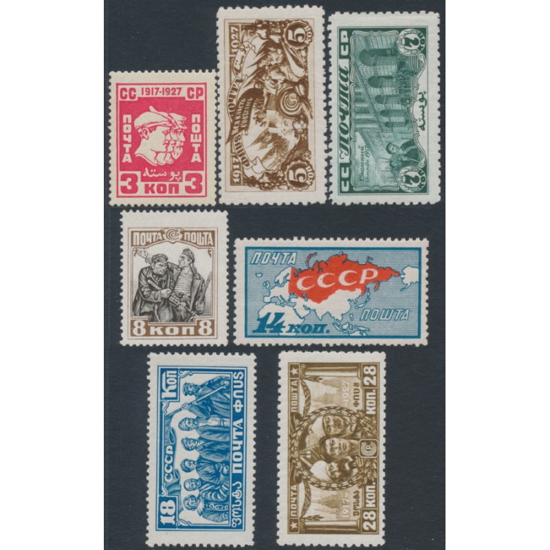 RUSSIA / U.S.S.R. / SOVIET UNION / РОССИЯ 1927 3K to 28K October Revolution set of 7, mint never hinged – no thins, tears or bends. Michel Cat. # 328-334 SG Cat. # 501-507