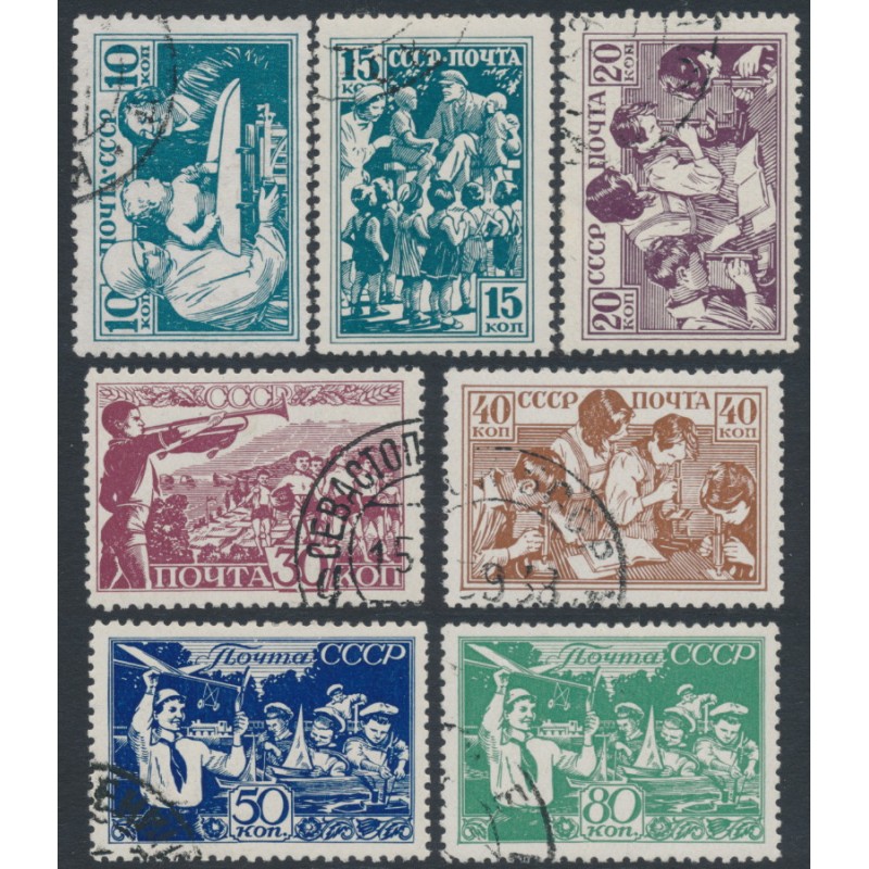 RUSSIA / U.S.S.R. / SOVIET UNION 1938 10K to 80K Soviet Children set of 7, used – no thins, tears or bends. Michel Cat. # 618-624 SG Cat. # 791-797