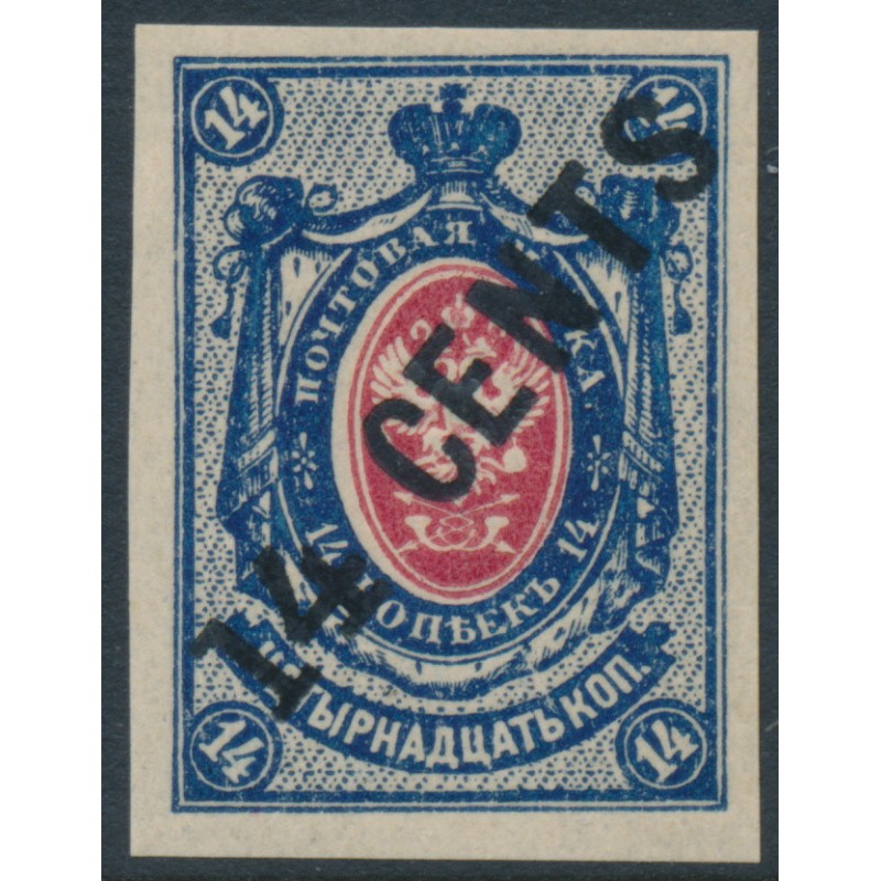 1917 14cents on 14Kop red/blue Arms, unissued imperforate, mint never hinged – no thins, tears or bends.