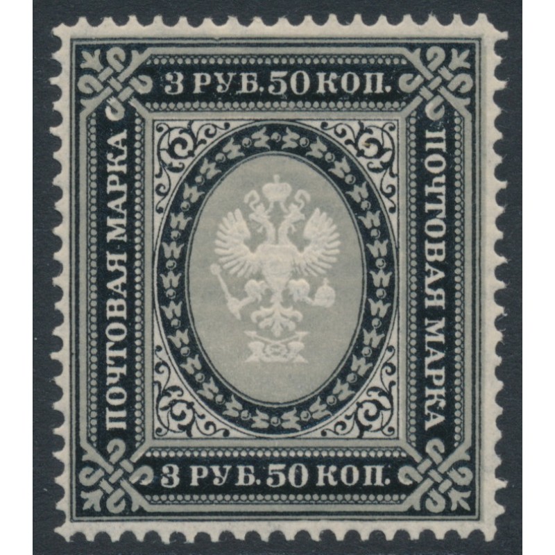 RUSSIA / РОССИЯ 1889 3.50R black/grey Coat of Arms, on horizontally laid paper, mint hinged – no thins, tears or bends. Michel Cat. # 55x SG Cat. # 62
