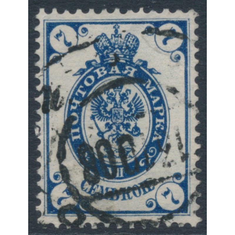 RUSSIA - 1905 7Kop blue Coat of Arms, missing background variety, used – Michel # 49yF