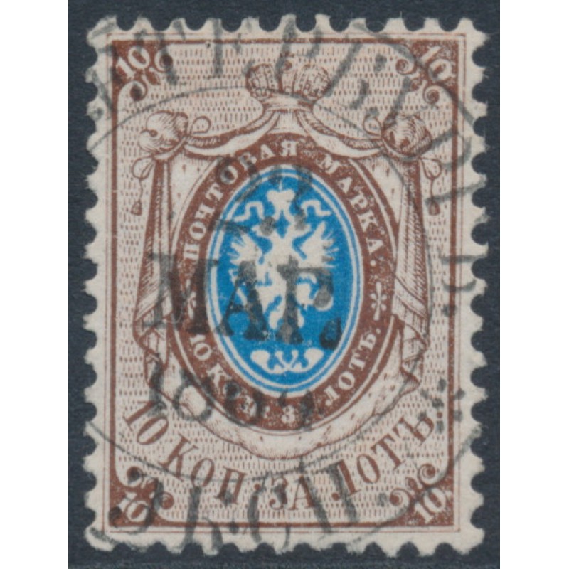 RUSSIA / РОССИЯ 1858 10Kop brown/blue Coat of Arms, perf. 12¼:12½, no watermark, used – no thins, tears or bends. Michel Cat. # 5 SG Cat. # 5