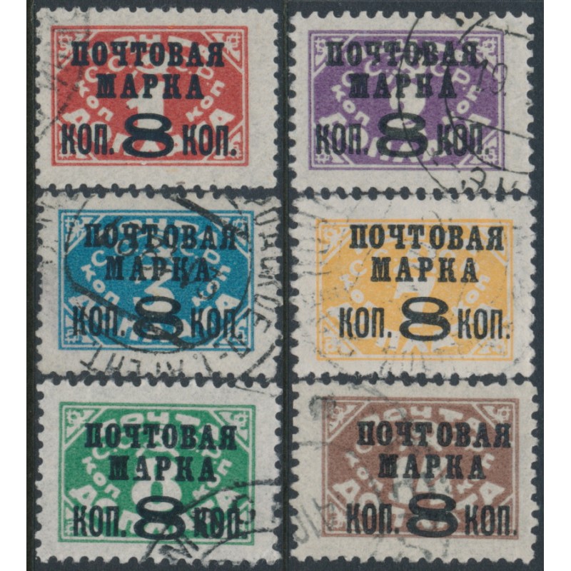 RUSSIA / USSR - 1927 8Kop o/p on Dues (typograph) set of 6, no watermark, used – Michel # 317IIX-323IIX