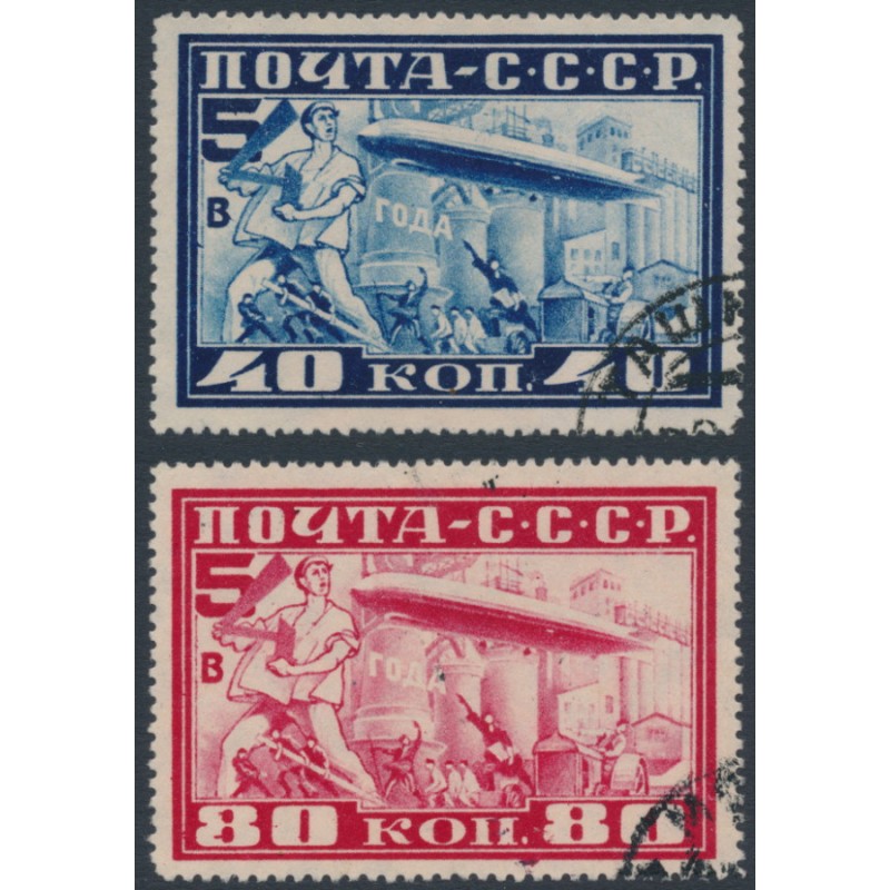 RUSSIA / USSR - 1930 Graf Zeppelin set of 2, perf. 12½, used – Michel # 390A-391A
