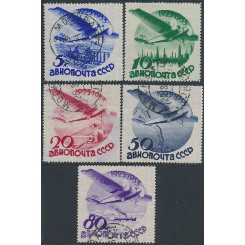 RUSSIA / USSR - 1933 Civil Aviation set of 5, with watermark, used – Michel # 462Y-466Y