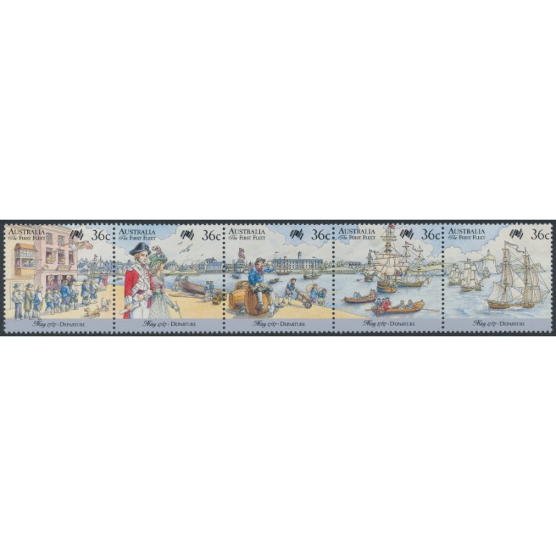 AUSTRALIA 1987 36c x 5 Departure of the First Fleet horizontal se-tenant strip of 5, mint never hinged – no thins, tears or bends. SG Cat. # 1059a