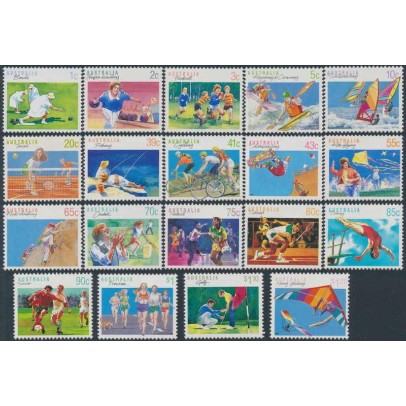 AUSTRALIA 1989-1990 1c to $1.20 Sports set of 19, mint never hinged – no thins, tears or bends. SG Cat. # 1169-1194