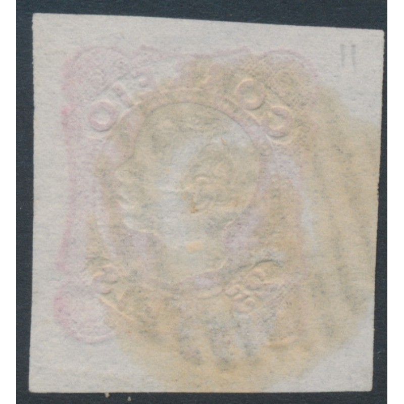 1858 25R rose King Pedro V (curly hair), imperforate, used – no thins, tears or bends.