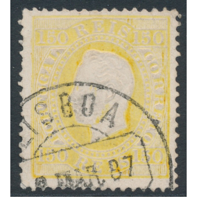 PORTUGAL 1880 150R lemon-yellow King Luis I, straight value ribbon, perf. 12½:12½, on ribbed paper, used – no thins, tears or bends. Michel Cat. # 49By