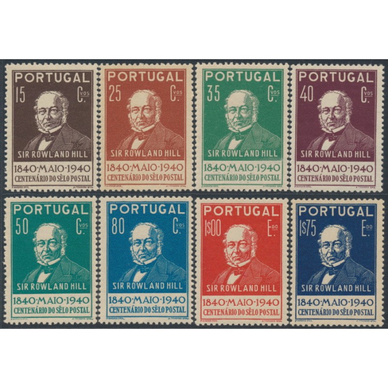 PORTUGAL 1940 15c to 1.75E 100th Anniversary of the Penny Black & Sir Rowland Hill set of 8, mint hinged – no thins, tears or bends. Michel Cat. # 622-629