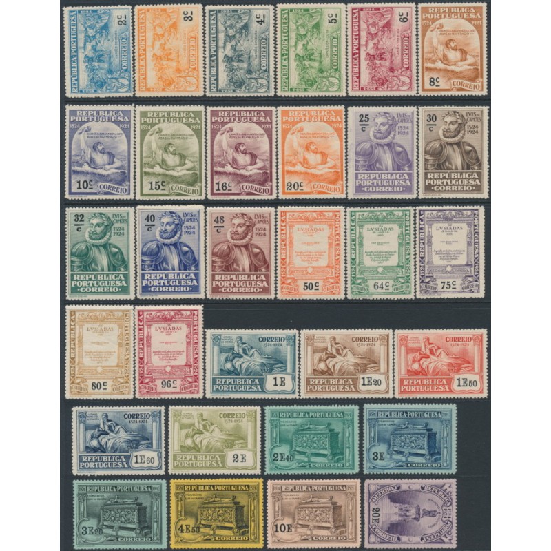 PORTUGAL 1924 2c to 20E Luís de Camões set of 31, mint hinged – no thins, tears or bends. Michel Cat. # 316-346