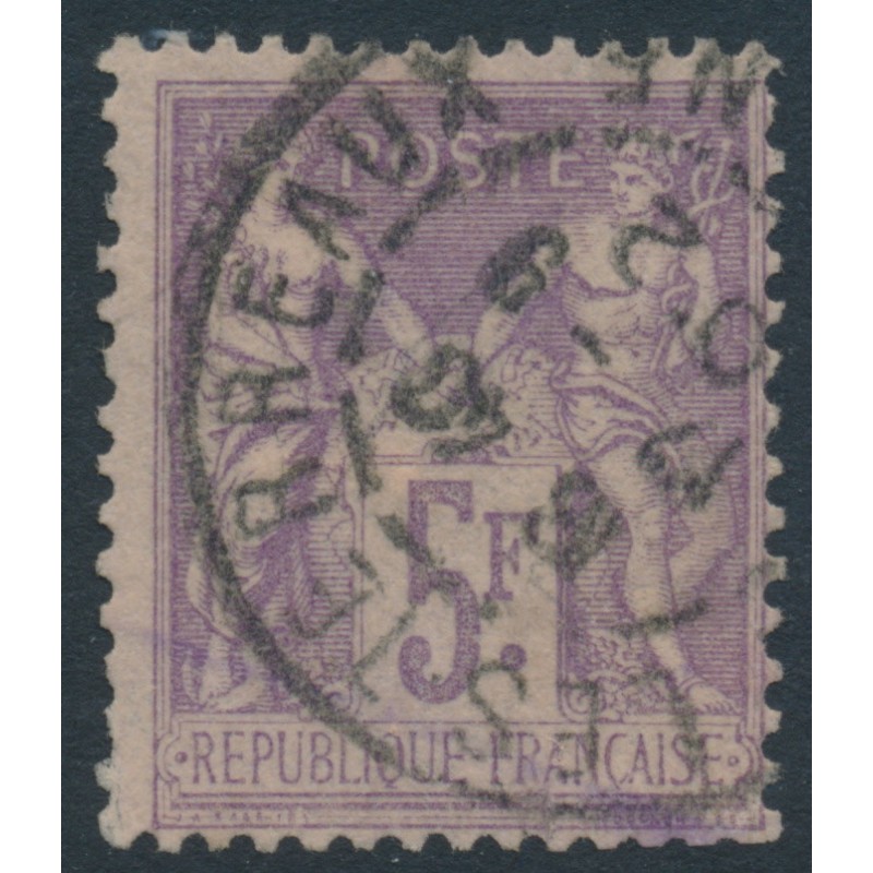 FRANCE 1877 5Fr red-violet Peace & Commerce, used – no thins, tears or bends. Michel Cat. # 76 Yvert Cat. # 95a