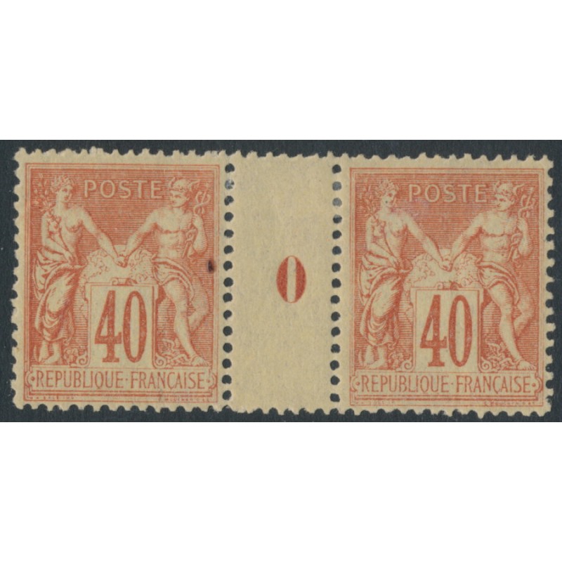 1881 40c brick-red on buff Peace & Commerce (type II), in a Millésime “0” gutter pair, mint hinged – the left stamp has a natural paper inclusion, and the right stamp has a light vertical gum bend.