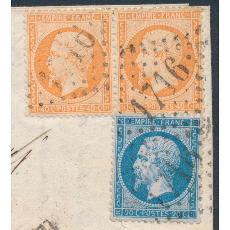 FRANCE - 1864 40c orange pair & 20c blue Napoléon on cover to Italy – Michel # 21+22