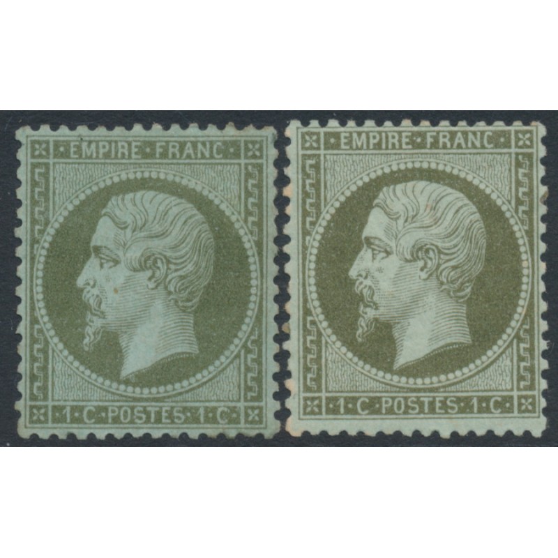 FRANCE - 1862 1c green-olive & greenish bronze Napoléon, perf. 14:13½, MH – Michel # 18a+18b