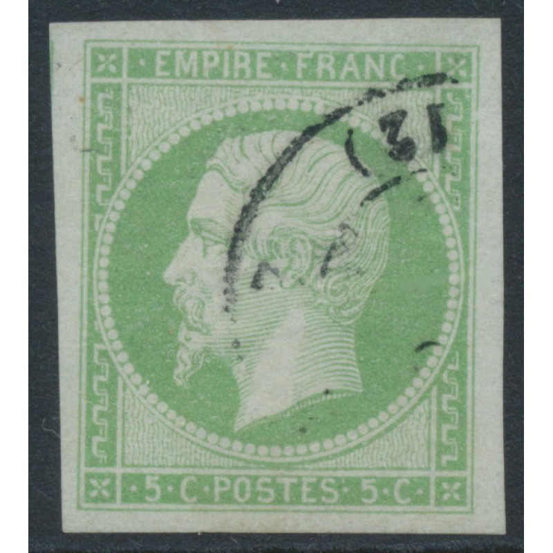 FRANCE 1860 5c yellow-green on greenish paper Emperor Napoléon, imperforate, used – no thins, tears or bends. Michel Cat. # 11a Yvert Cat. # 12a