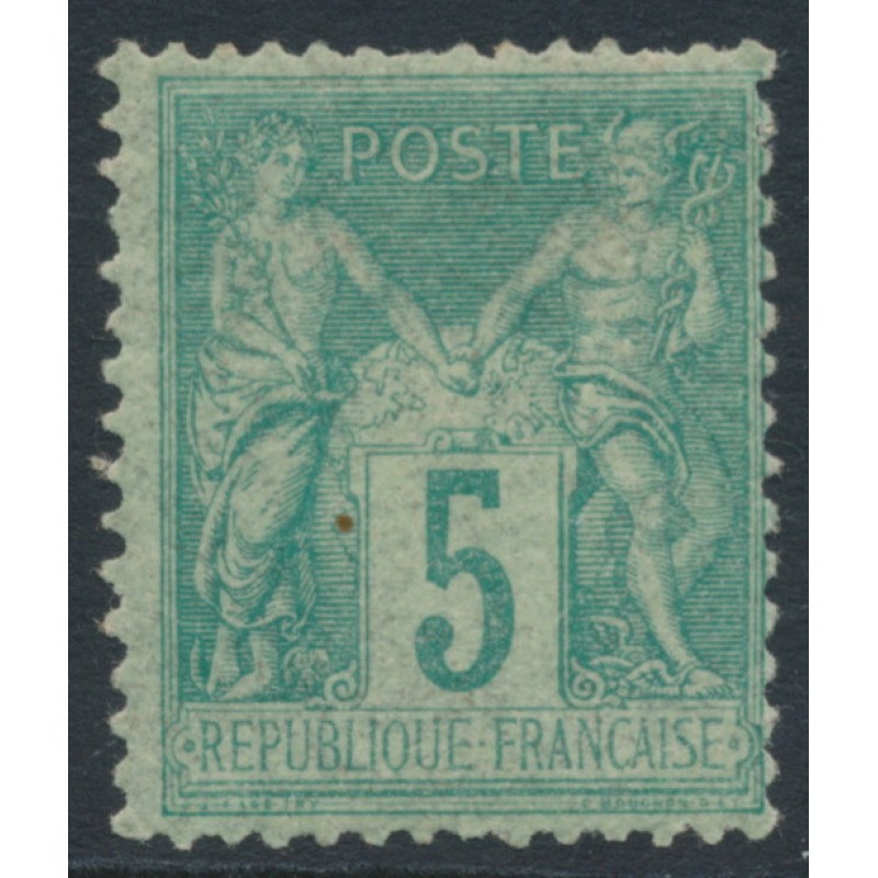FRANCE 1876 5c green Peace & Commerce, type II, mint hinged – no thins, tears or bends. Michel Cat. # 59IIa Yvert Cat. # 75