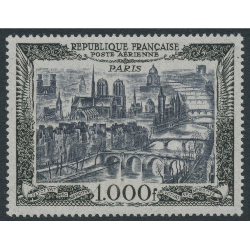 FRANCE 1950 1000Fr grey-black/black on bluish paper Airmail, mint hinged – no thins, tears or bends. Michel Cat. # 865