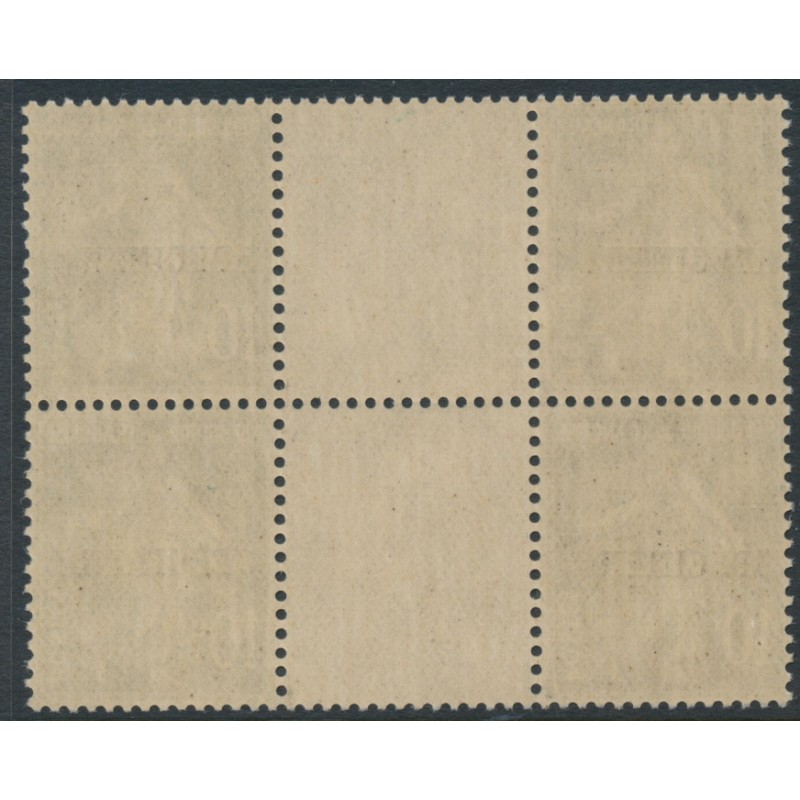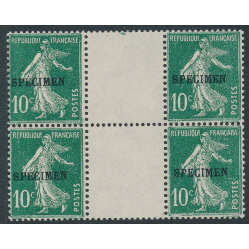 1922 10c green Semeuse in a gutter block of 4, overprinted SPECIMEN (cours d'instruction), mint never hinged – no thins, tears or bends.