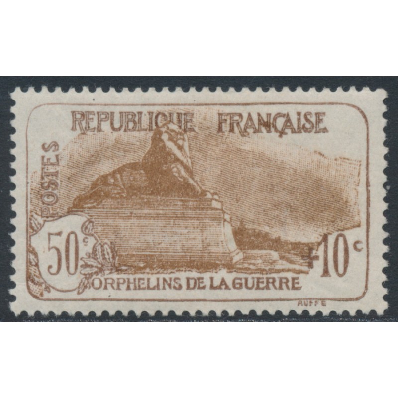 1927 50c+10c brown War Orphans (Orphelins de la Guerre), mint hinged – no thins, tears or bends.