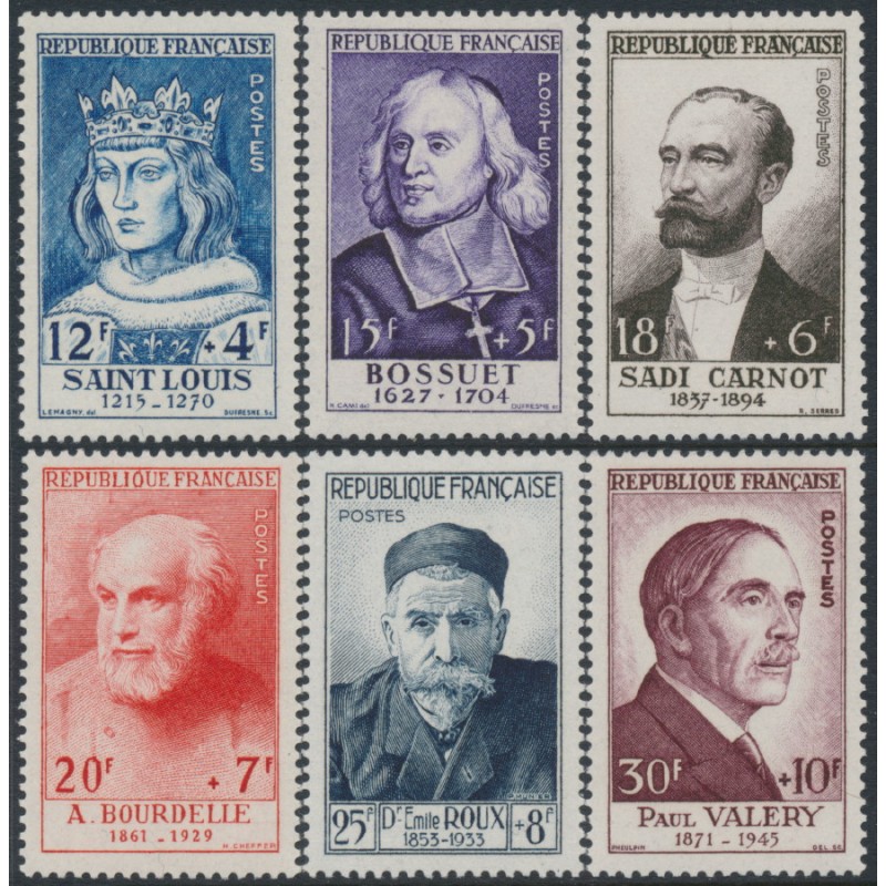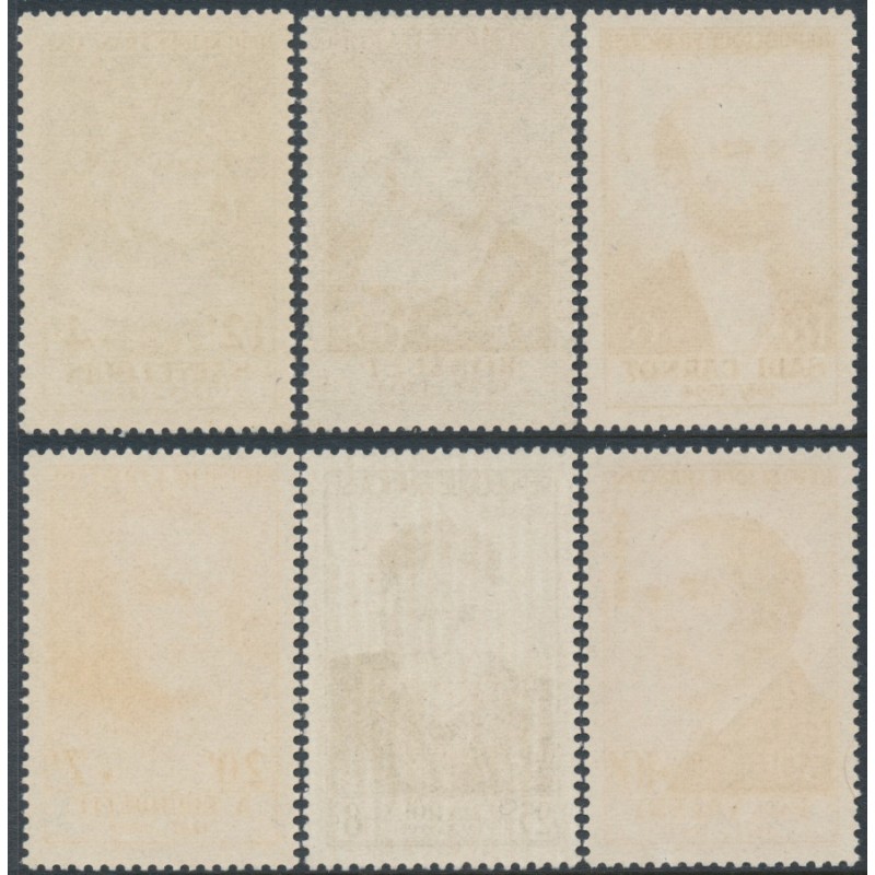 FRANCE 1954 Famous Frenchmen set of 6, mint never hinged – no thins, tears or bends. Michel Cat. # 1015-1020 Yvert Cat. # 989-994