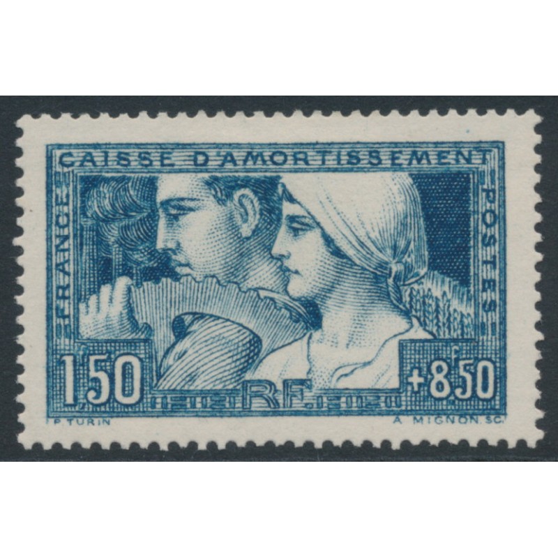 FRANCE 1928 1.50Fr + 8.50Fr blue Caisse d’Amortissement, mint hinged – no thins, tears or bends. Michel Cat. # 229 Yvert Cat. # 252