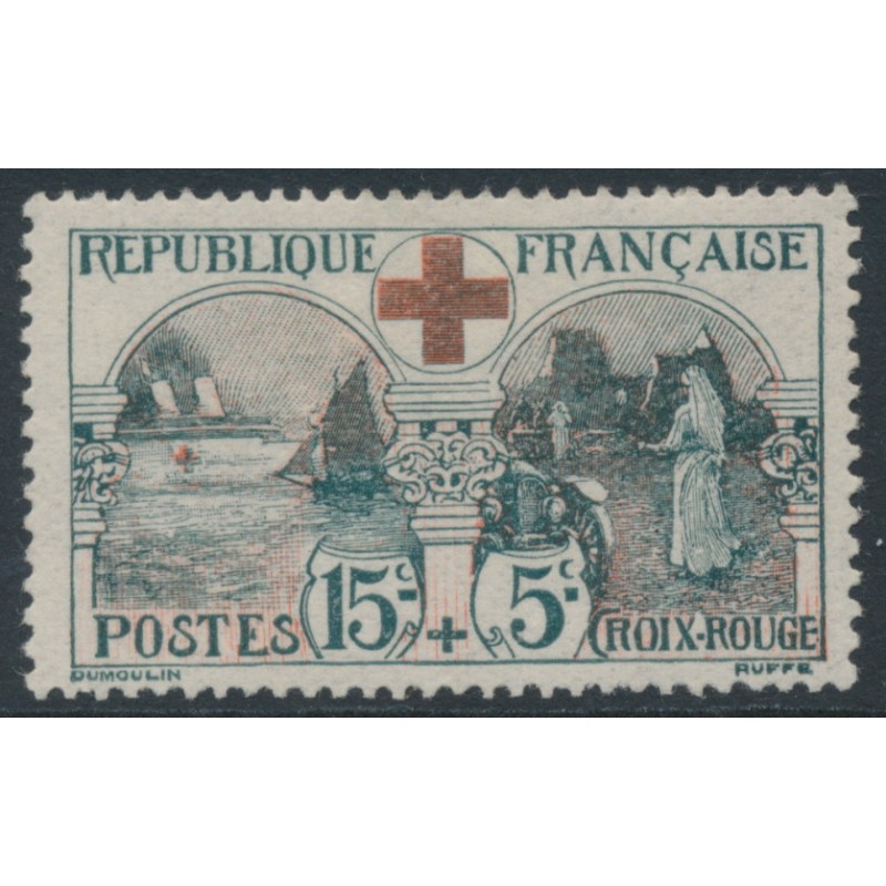 FRANCE 1918 15c+5c grey/red Red Cross, mint hinged – no thins, tears or bends. Michel Cat. # 136 Yvert Cat. # 156