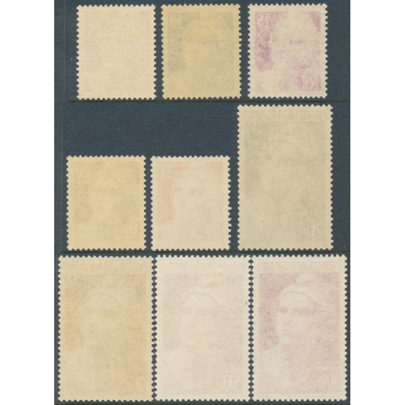 FRANCE 1945 4Fr to 100Fr Marianne (Gandon) set of 9, mint never hinged – no thins, tears or bends. Michel Cat. # 698-706 Yvert Cat. # 725-732
