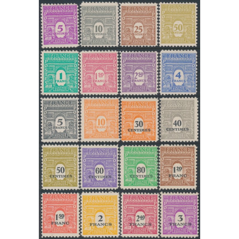 FRANCE 1944 Arc de Triomphe set of 20, mint never hinged – no thins, tears or bends. Michel Cat. # 639-658 Yvert Cat. # 620-629 + 702-711
