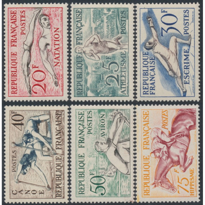 FRANCE 1953 20Fr to 75Fr Sports set of 6, mint never hinged – no thins, tears or bends. Michel Cat. # 978-983 Yvert Cat. # 960-965