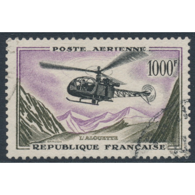FRANCE 1958 1000Fr Helicopter ‘Alouette’, used – no thins, tears or bends. Michel Cat. # 1177 Yvert Cat. # PA37