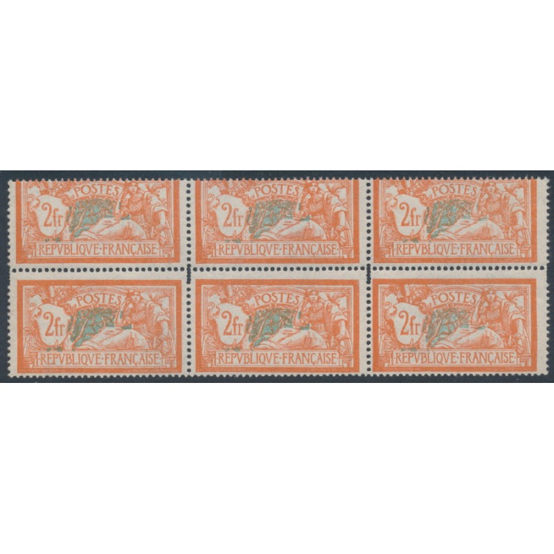 FRANCE - 1920 2Fr orange/blue Merson, double perforations B/6, MNH – Michel # 139