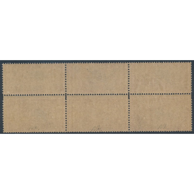1920 2Fr orange/blue Merson, block of 6 with double perforations, resulting in very short stamps in the top row and double perfs in the bottom row, mint never hinged – no thins, tears or bends. Has been expertised as genuine by Benoît Chandanson.