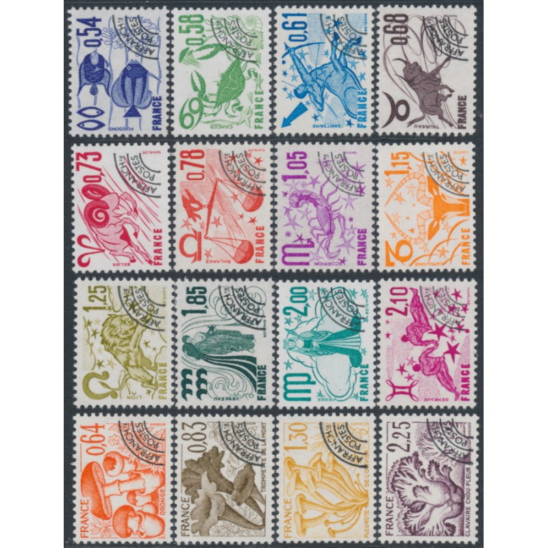 FRANCE 1977-1979 0.54Fr to 2.35Fr Zodiac & Mushrooms pre-cancels (pré-oblitérés) set of 16, mint never hinged – no thins, tears or bends. Yvert Cat. # PO146-PO161