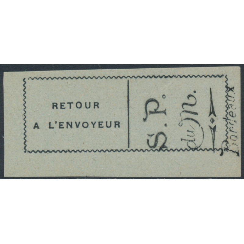 FRANCE 1916 Return to Sender label, black on blue (timbre de retour), mint never hinged – no thins, tears or bends. Yvert Cat. # TR1