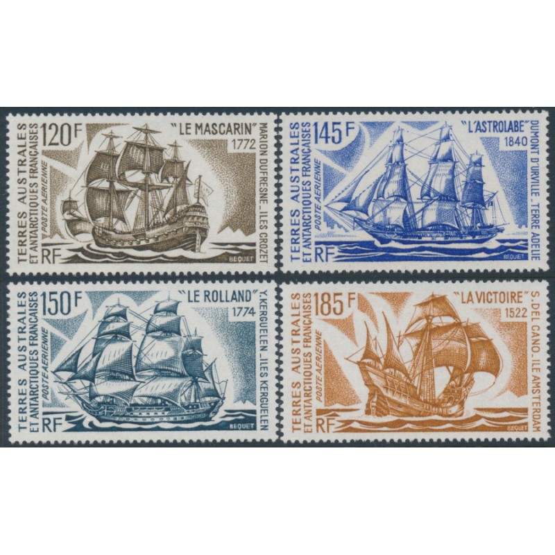 FRANCE / T.A.A.F. 1974 120Fr to 185Fr Sailing Ships set of 4, mint never hinged – no thins, tears or bends. Michel Cat. # 85-88 Yvert Cat. # PA30-PA33