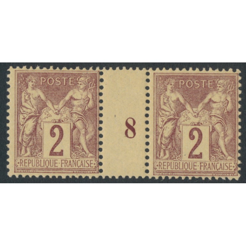FRANCE 1877 2c red-brown on buff Peace & Commerce, in a Millésime “8” gutter pair, mint hinged – no thins, tears or bends. Michel Cat. # 69 Yvert Cat. # 85