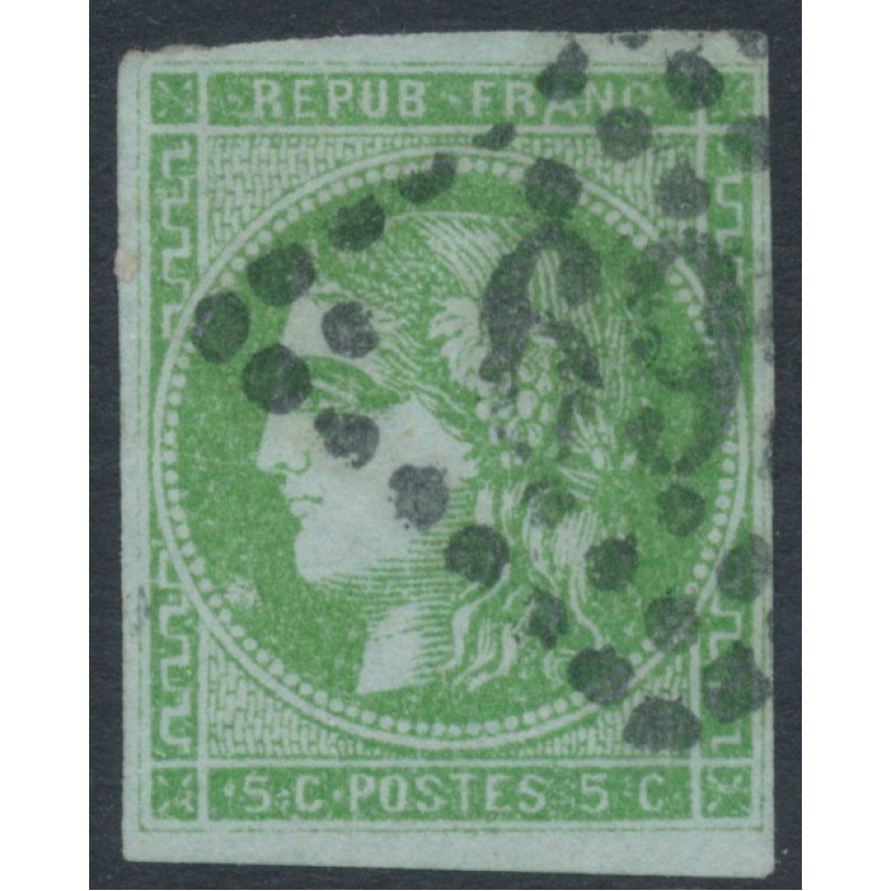 FRANCE 1870 5c green Cérès (Bordeaux printing), imperforate, used – no thins, tears or bends. Michel Cat. # 39a Yvert Cat. # 42