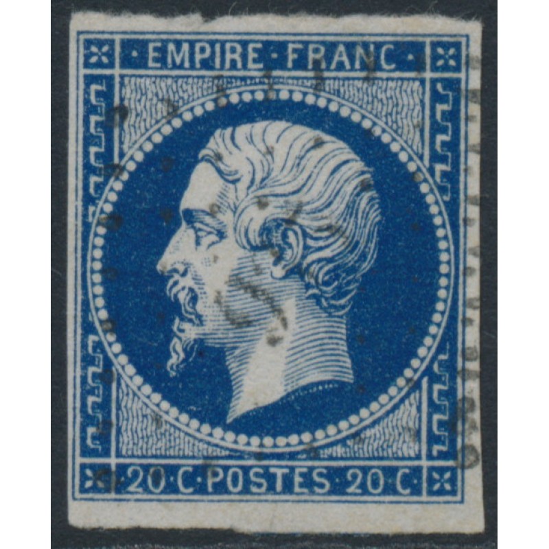 FRANCE 1854 20c very deep blue Emperor Napoléon, type I, imperforate, used – no thins, tears or bends. Michel Cat. # 13Ic Yvert Cat. # 14Ab