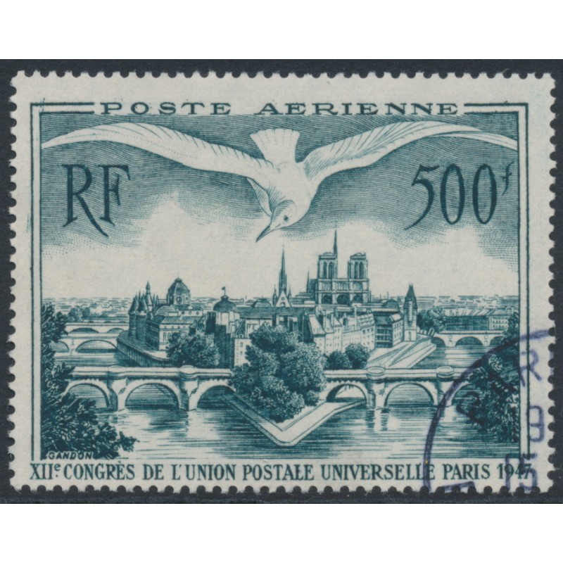 FRANCE 1947 500Fr grey-green Seagull airmail, used – no thins, tears or bends. Michel Cat. # 782 Yvert Cat. # PA20