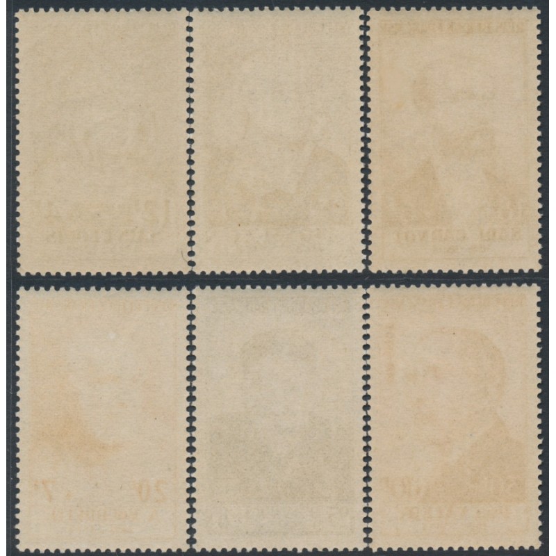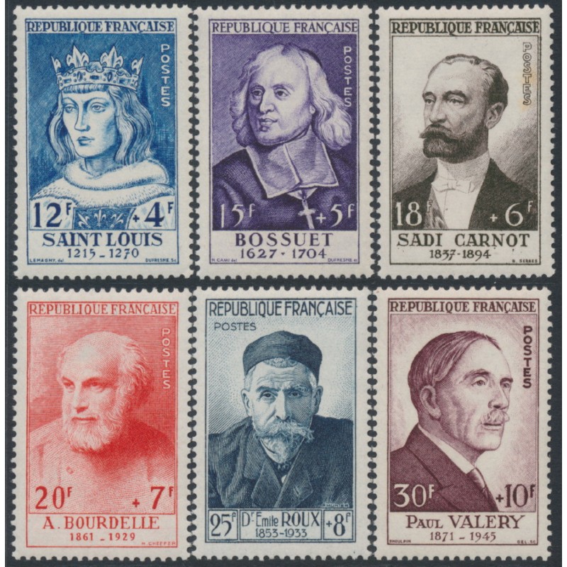 FRANCE 1954 Famous Frenchmen set of 6, mint never hinged – no thins, tears or bends. Michel Cat. # 1015-1020 Yvert Cat. # 989-994