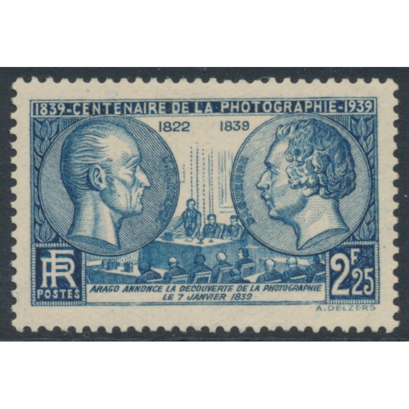 FRANCE 1939 2.25Fr blue Photography Anniversary, mint never hinged – no thins, tears or bends. Michel Cat. # 446 Yvert Cat. # 427
