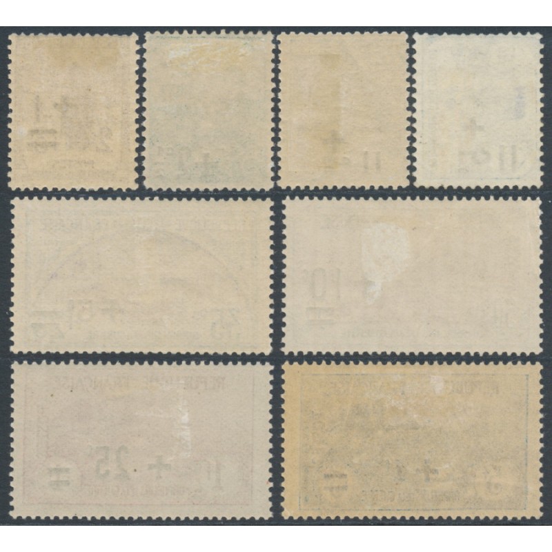 1922 2c+1c to 5Fr+1Fr War Orphans (Orphelins de la Guerre) overprint set of 8, mint hinged – no thins, tears or bends.
