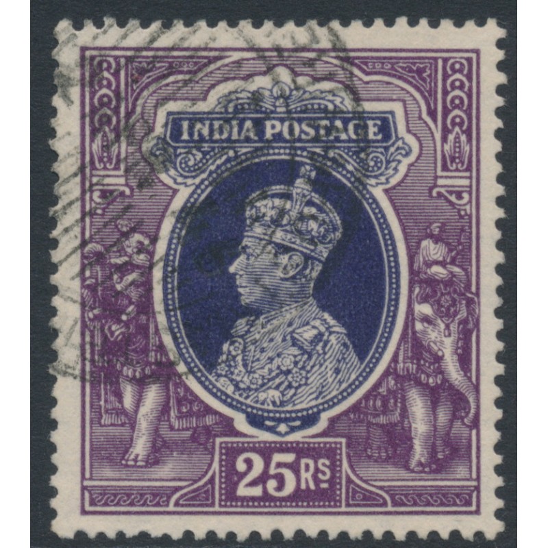 INDIA 1937 25R slate-violet/purple King George VI, multi stars watermark, used – no thins, tears or bends. SG Cat. # 264