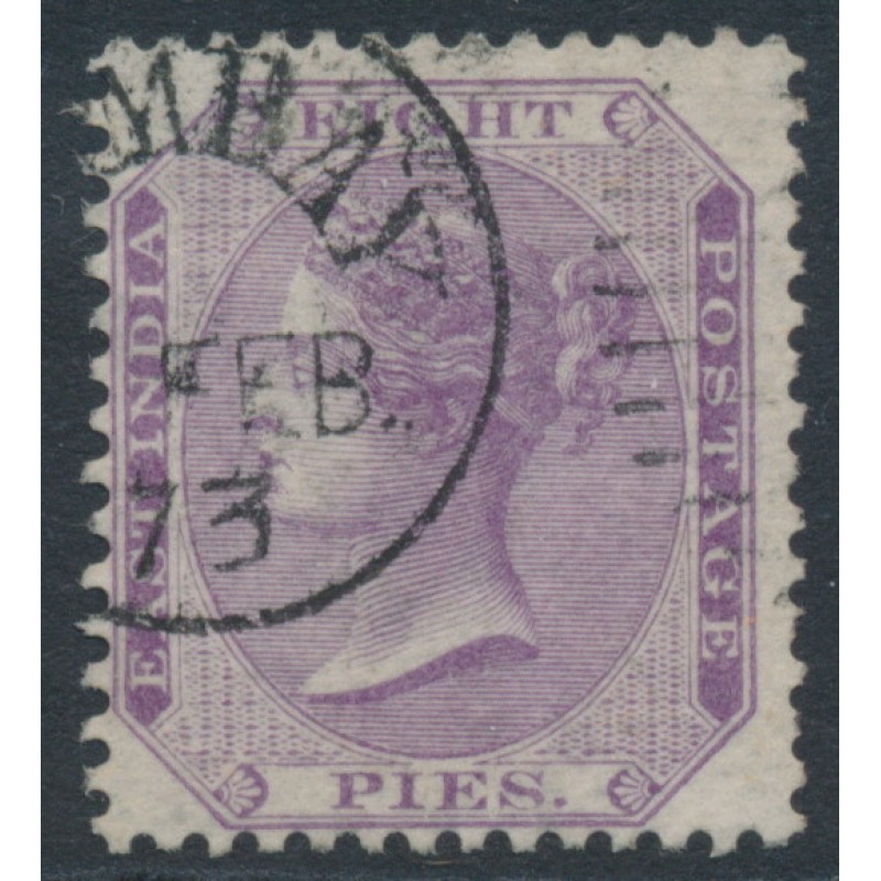 INDIA - 1865 8p purple QV, elephant watermark, used – SG # 56