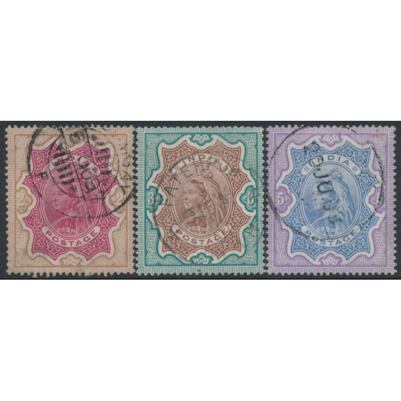 INDIA 1895 2Rp to 5Rp Queen Victoria definitives, single star watermark, used – no thins, tears or bends. SG Cat. # 107-109