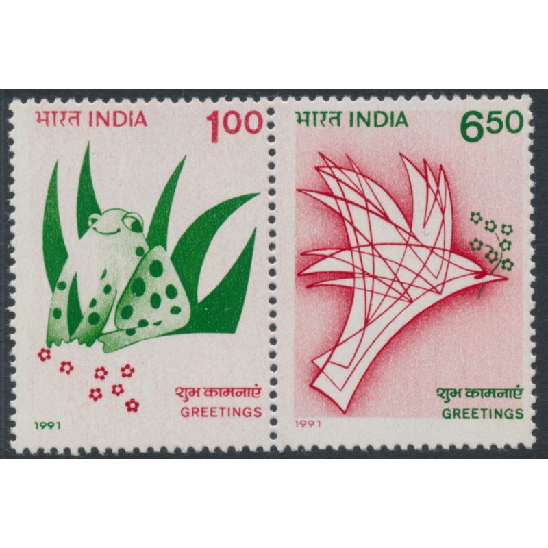 INDIA - 1991 1Rp & 6.50Rp Greetings Stamps pair, MNH – SG # 1468a